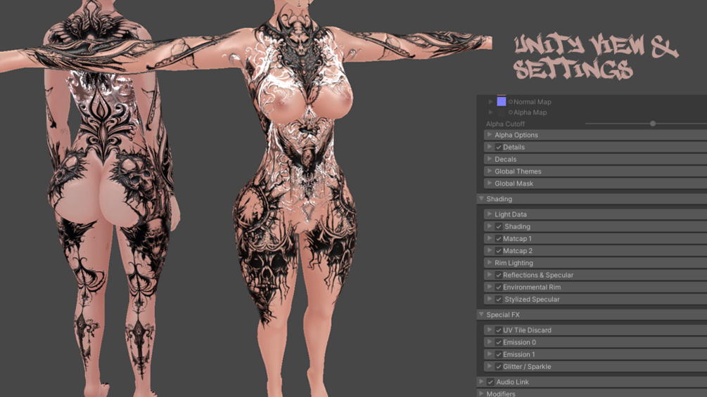 - Unity File that replicates all the settings as seen in the preview pictures as well as gifs (Matcaps, Emissions Settings, gradient maps, etc)