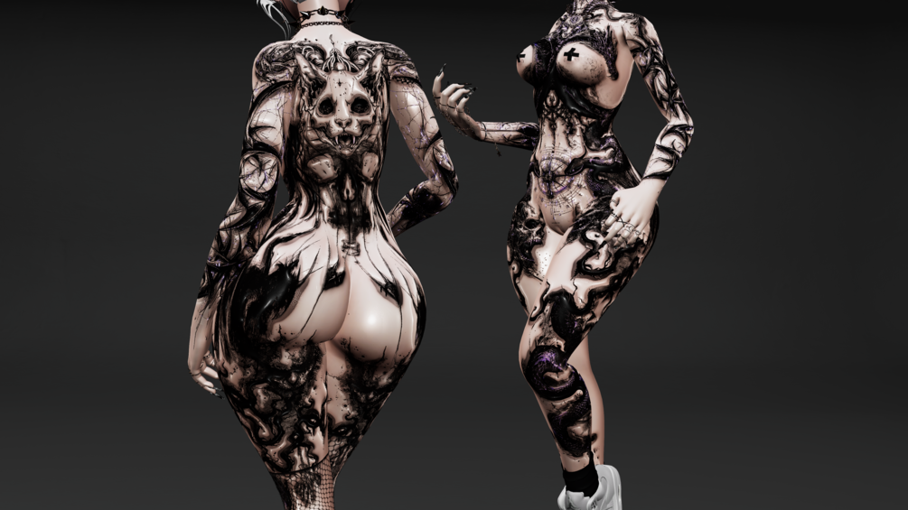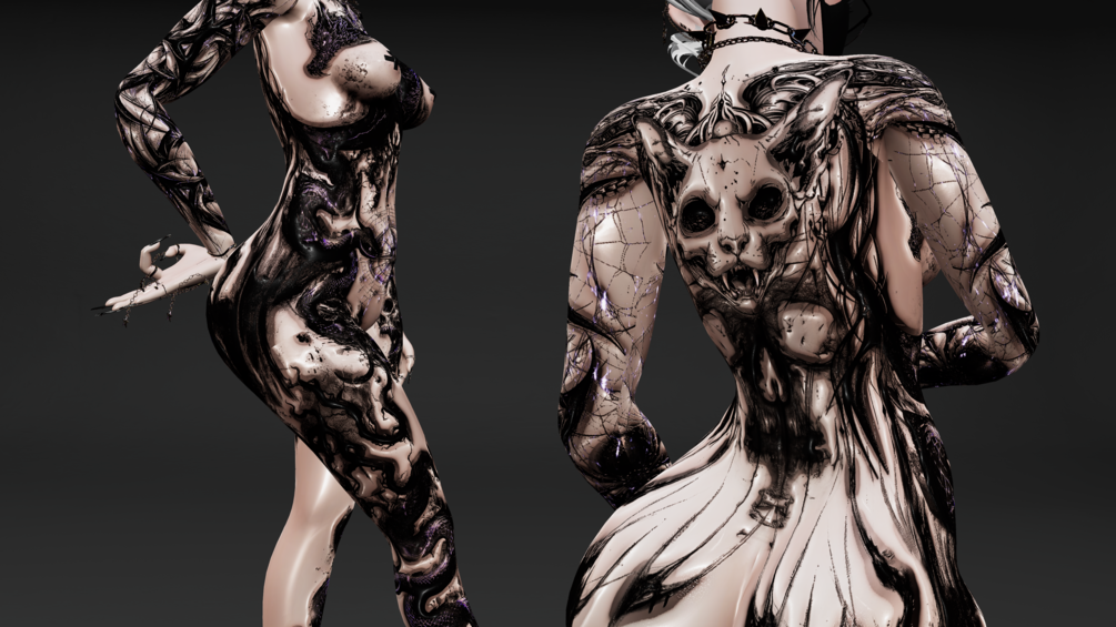 Have some basic Unity knowledge, Unity Materials using Poiyomi 8.1 Toon, which can be found on Poi's Github or Server. If the Material is pink, just re-assign it. All Materials are set up in a decal way, and won't come with any base texture from the original bases / any aftermarket textures out there.